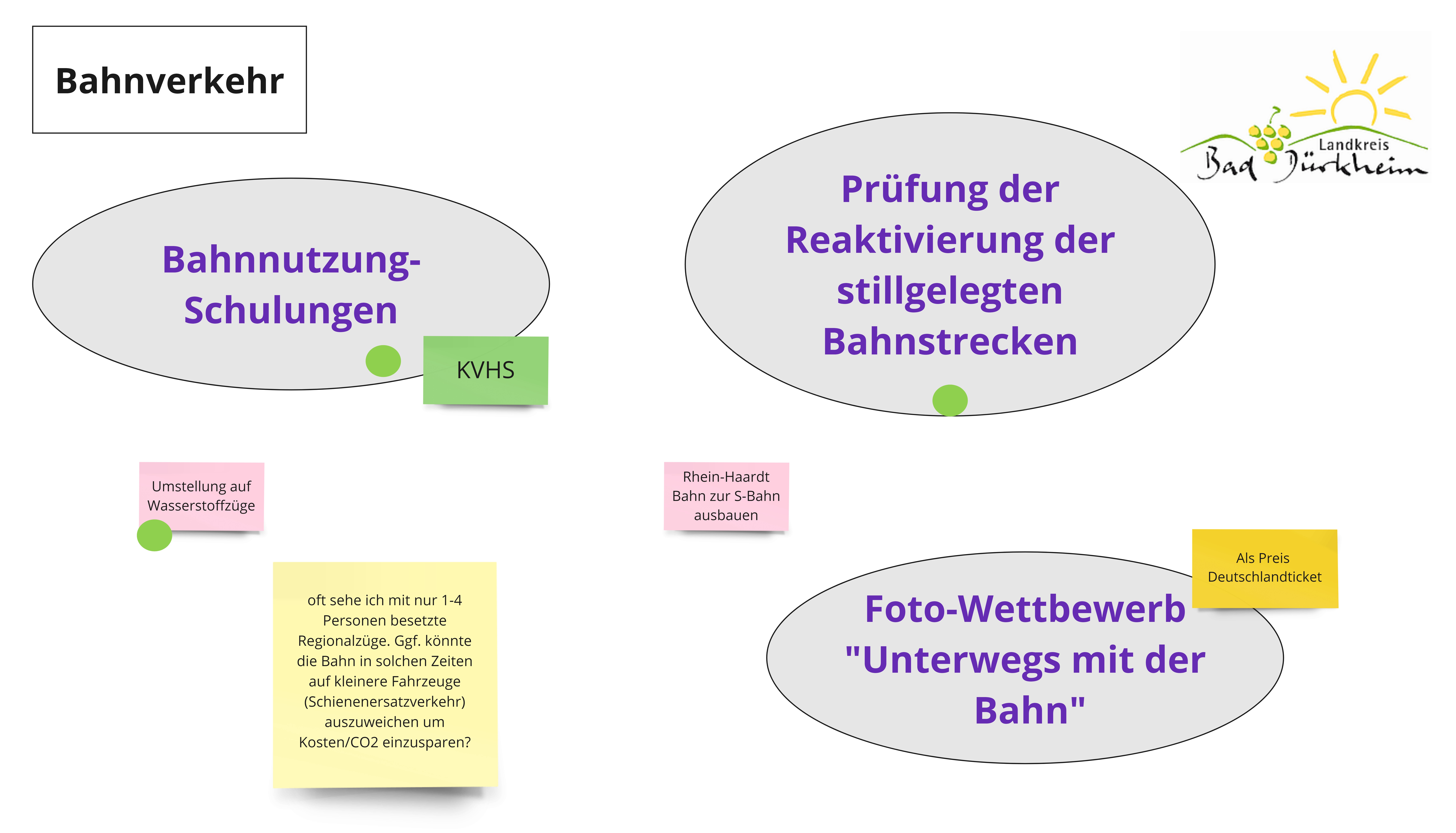 Mit Öffentlichem Verkehr und betrieblichem Mobilitätsmanagement befasste sich die dritte und zugleich letzte Online-Bürgerbeteiligung zum Klimaschutzkonzept des Landkreises Bad Dürkheim am Dienstag, 30. Mai, ab 18 Uhr. Bei den ersten beiden Terminen ging es um Rad- und Fußverkehr sowie motorisierten Individualverkehr und geteilte Mobilität, aber auch um das Leitbild und Leitlinien des Konzepts. Das wurde ebenso erneut thematisiert wie bereits vorhandene Ansätze aus Auftaktveranstaltung, Fachworkshop und den ersten beiden Online-Veranstaltungen. Die Teilnehmer sollten weitere Ideen erarbeiten und das Zusammengetragene weiterentwickeln hin zu umsetzbaren Maßnahmen. Diese sollen sich dann im Maßnahmenkatalog des Klimaschutzkonzepts wiederfinden, das unter dem Schwerpunkt „Klimafreundliche Mobilität“ steht. Die Veranstaltung fand auf der Video-Plattform Webex statt.Auf dem Themenplan standen beim betrieblichen Mobilitätsmanagement unter anderem Carsharing, Fahrgemeinschaften, Mitfahrgelegenheiten, Ladeinfrastruktur für E-Fahrzeuge, Möglichkeiten zur Reduzierung der verkehrsbedingten Emissionen bei Arbeits- und Dienstwegen, Jobticket oder Jobfahrrad, aber auch Mobilität rund um Kitas und Schulen oder für Touristen.